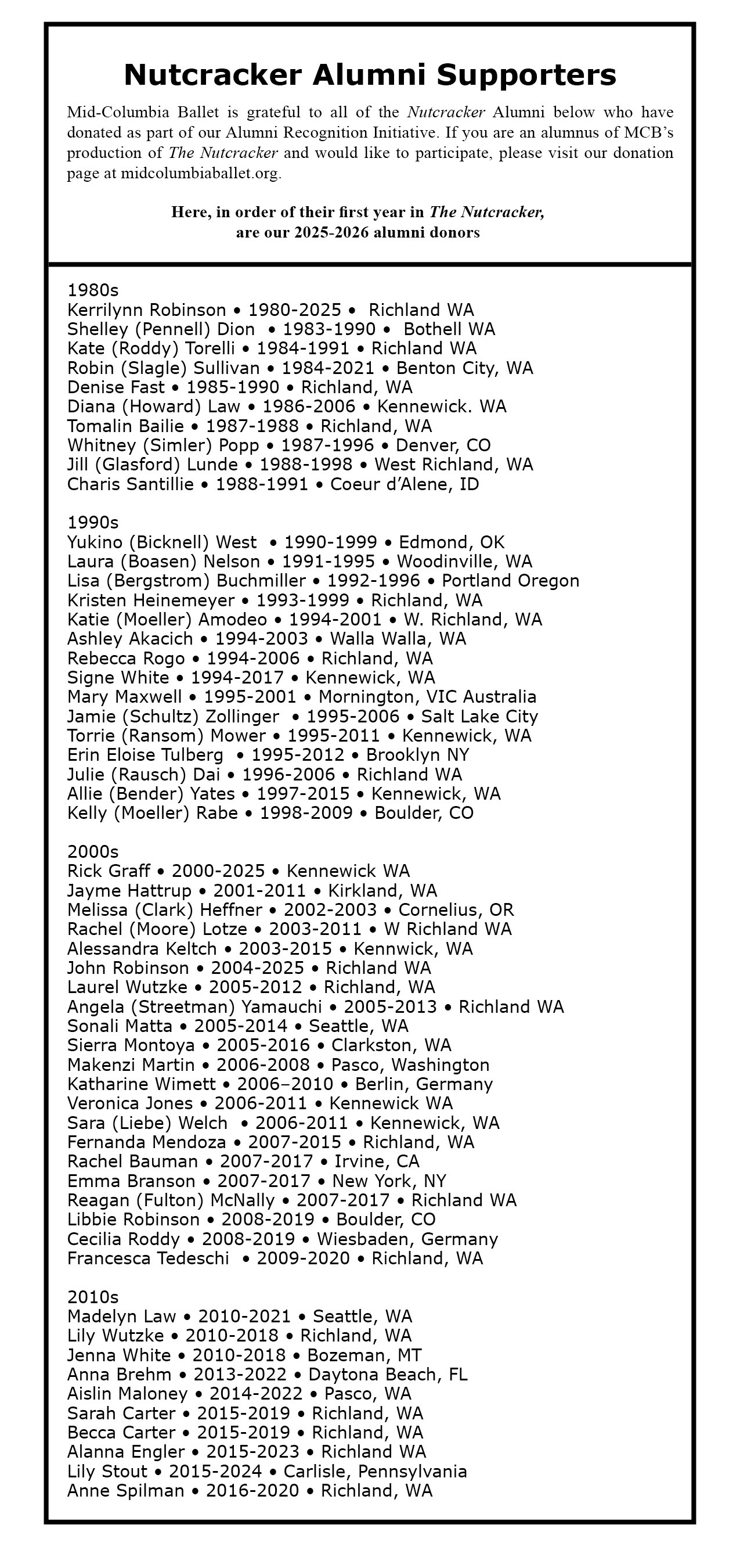 MID-COLUMBIA BALLET THANKS ITS CORPORATE AND INDIVIDUAL DONORS FOR THE 2024-25 SEASON
